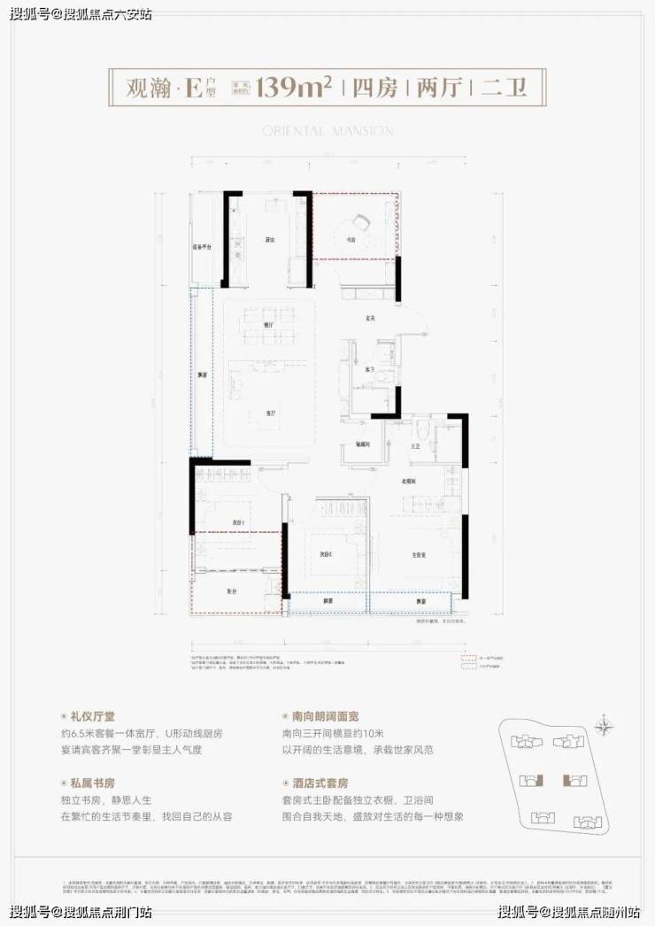 鸣澜里139平户型同样做的不错,打造四房两厅两卫,分为横竖两款,全部为边套,两梯两户设计。其中,139平竖厅户型亮点分析:①户型得房率超高,达到约93%;② 南向3个卧室,采光优且满足二胎家庭和三代同堂居住需求;③ 客厅面积达到约37平,足够大,同时额外配置约2.6平的储物间。
