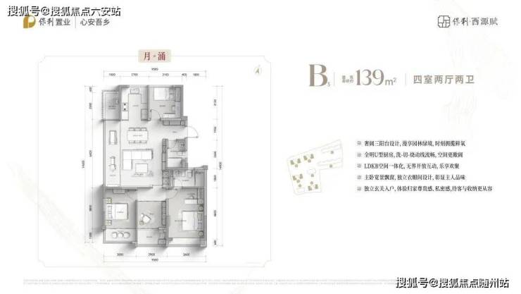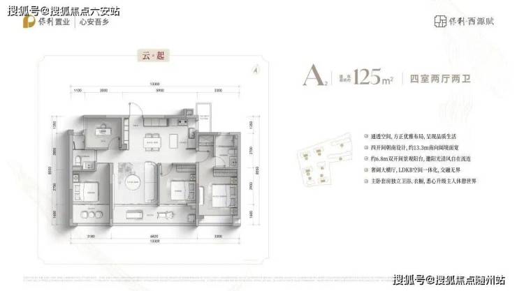 首开楼栋的主力户型为建面约125㎡-139㎡的高层四房。这些户型均注重居住空间的合理性和实用性,得房率约88%。建面约125㎡户型为开放式厨房设计,并设有岛台;建面约139㎡户型南面书房为玻璃移门设计,两个户型均做到了空间利用最大化。
