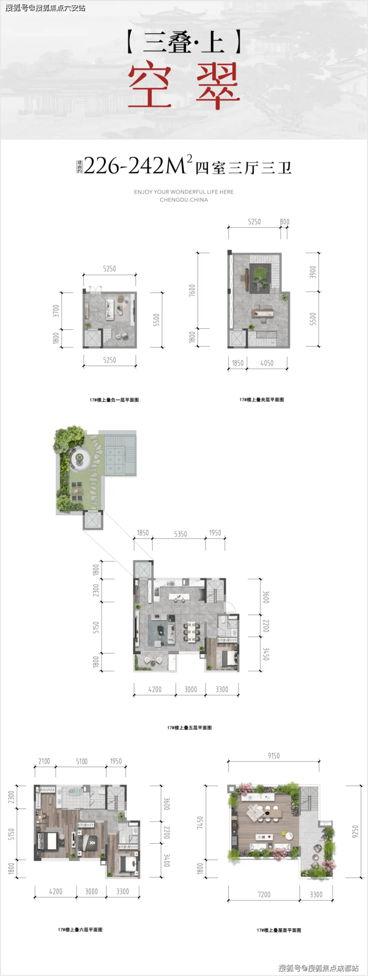 户型亮点:建面约207-296㎡户型,涵盖两叠与三叠,户户朝南、独立电梯入户、私家花园私密归家动线,部分房源配备双下沉式庭院,实现“有天、有地、有院、有景”的墅居体验。