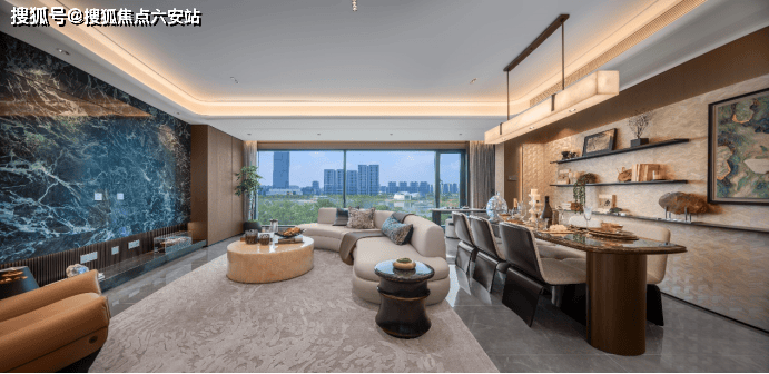 项目还注重细节品质提升,采用铸铝装甲子母门、厨房钢琴烤漆面板,750 * 1500mm大砖拼接,主卧配置美妆冰箱和毛巾架等贴心设计。全屋收纳系统总面积约42m³,让实用功能隐于美学表达之中,确保空间的整洁与奢阔感并存。