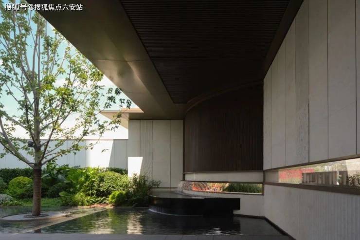 初见,直线与弧线的交织,立体的线条,自然的肌理,流动的跌水,孤植乔木点缀其间中,使空间蕴含独特的礼序之感,最大化的增强入口昭示感,以二进式大门收放有序徐徐引入,引导着都市中的你我,由此开启的归家之路更添仪式。
