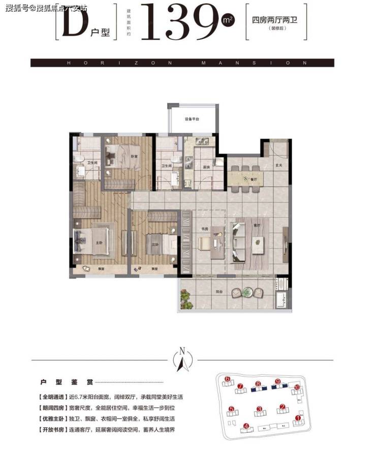 ✅ 改善139㎡四房:6.7米南向双阳台,四开间朝南,南北通透