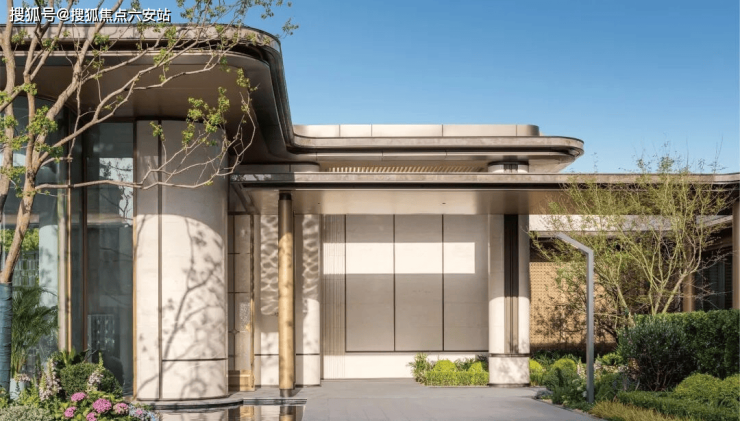 项目外立面采用现代轻奢法式风格,汲取白金美学灵感,通过大面玻璃和对称式金色画框立面,打造光影灵动的建筑形象。归家门厅宽度约43米,以书卷气息为设计灵感,搭配都会新贵白金色调,营造出既有书香之韵又有人居宅院气质的入口空间。
