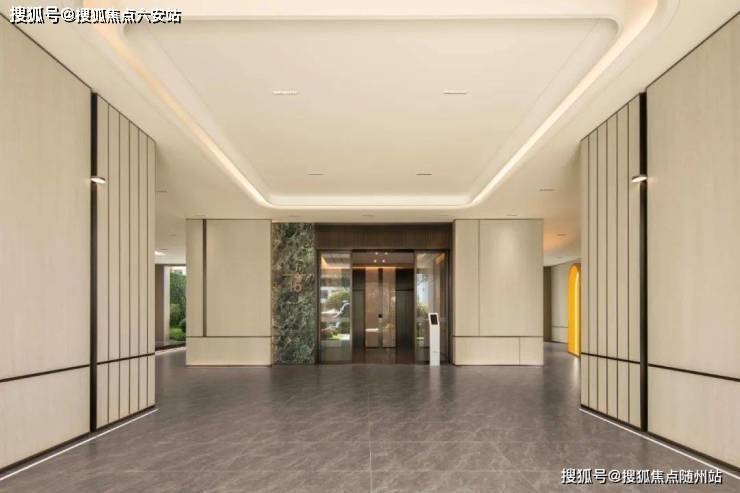 门庭。这里特指单元门庭,通高约4m,气势恢宏。大面积的金属屋檐外挑,彰显贵胄的同时,又扩大遮风挡雨的面积。进门左侧,色彩饱满的普拉达绿竖版镶嵌,美学传达与奢华品质相辅相成。进门后,又是大幅岩板上墙,气质拉满。