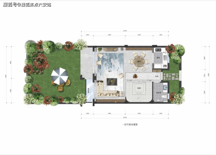 地上一层:客餐厨一体化设计,客厅连接南向庭院,推门就能步入花园;预留父母房,带独立卫浴,避免上下楼奔波,贴心适配长辈需求;