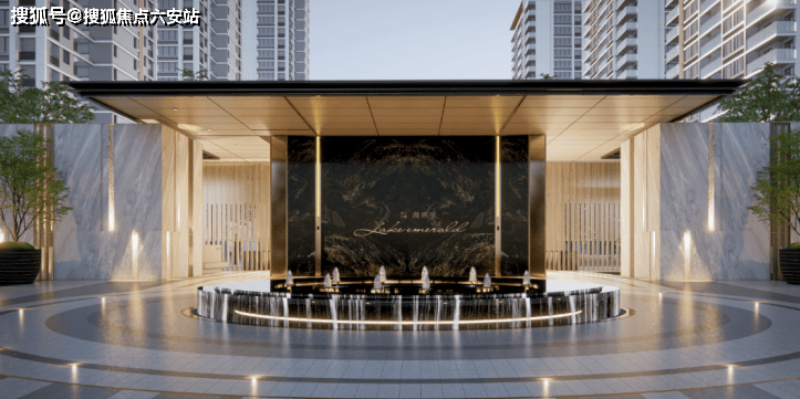 入户大堂是一个楼盘的门面,彰显了一个楼盘的气质。 在湖映里,大气的酒店式入户大堂, 顶部大挑檐,岩板背景搭配金色金属格栅 ,两侧的休息区连接着风雨连廊,每一处细节都彰显着尊贵气质,无论是出门时的憧憬,还是归家时的喜悦,都能让生活充满仪式感。
