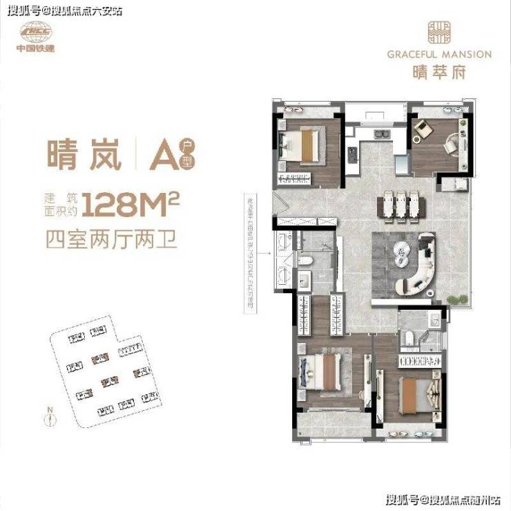 128方的户型做到了四室两厅两卫,是一步到位改善人群的最佳选择。