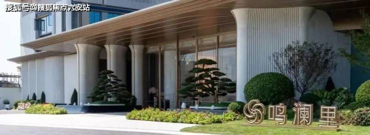 门前两棵罗汉松;园区内的中央园林围绕新型蓝宝石戏水池打造,营造澜韵迎宾、松鸣涧语、鸣泉叠韵、鸣芳拾趣、鸣香径幽等九境空间。