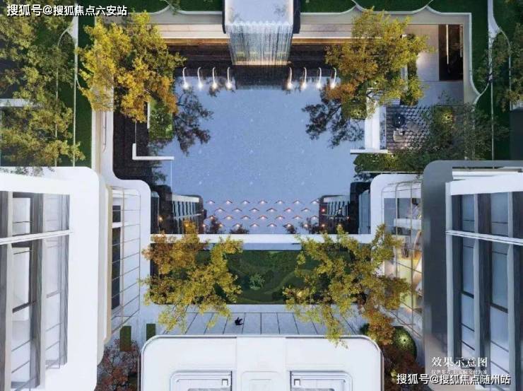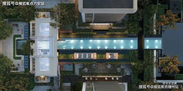 园林中轴设计近60米长景观戏水池,并配置约3000㎡城市花园会客厅。
