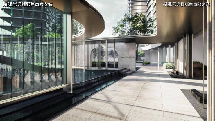 同时,在“松与云”的围合式布局里,小区的公区空间则以水景、松柏、陷入式地景园林为中心,利用弧线元素和风雨连廊串联起小区私享的豪华公区:
