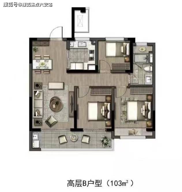 该面积段稀缺边户,南北通透,主卧套房设计,三开间朝南,双开间阳台,空间尺寸非常舒适