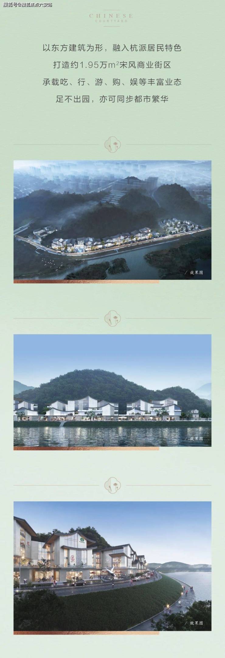 一脉桃李精工,一线青山湖畔,傲踞城西科创大走廊临安片区滨湖新城核芯,园区规划30席纯中式合院,约1.95万方宋风商业街等生活业态,城市湖居院落,敬献临安少数人