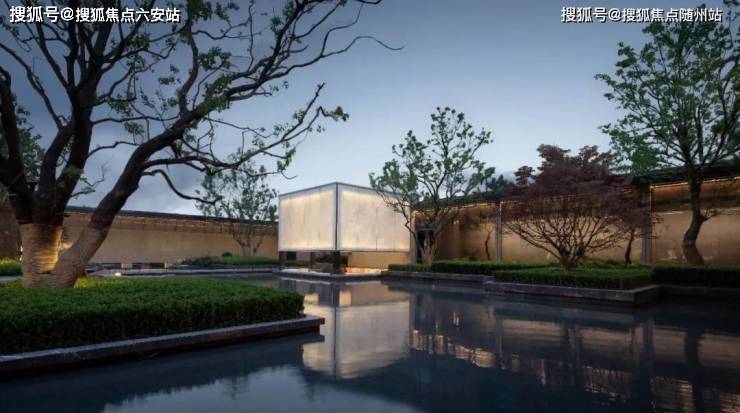 山水隐园设计灵感来源于“元四家”倪瓒的《江亭山色图》,设计师以石为纸、以水为墨,把 “淡烟流水画屏幽”之境融入场景,将坡岸、古树、空亭、静水以现代简约的方式呈现出来。