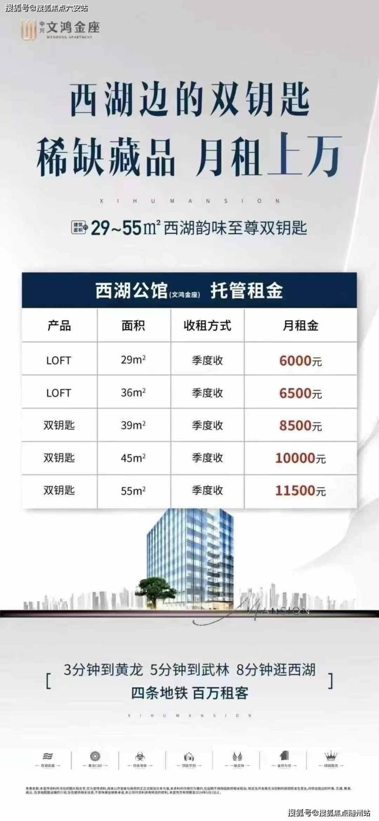 文鸿金座所处黄龙CBD核芯,这里是杭州行政、金融、教育资源最集中的真正市中心爵版地段,一脉西湖,贵隐黄龙,由国企匠心打造新西湖商务私域,擎画黄龙CBD商务空间新格局。总建面1.53万方,地上10层,其中1层为商业配套,2-10层为4.78米酒店式公寓,杭州本地国企开发,第三方高品质精装;