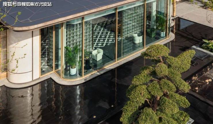 项目入口两侧油橄榄树姿态优雅,自带松弛感;归家序厅两侧有种植桂花树,隐喻“蟾宫折桂”的祝福;地面铺装芝麻黑花岗岩与福鼎黑花岗岩,不仅沉稳大气还有活泼灵动……生态封面与人文底蕴的完美结合,让宸岸新月府成为了一处真正的诗意栖居地。