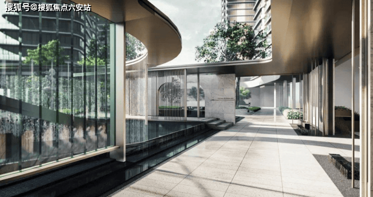 外立面:以“凌云松”为灵感,采用流线型玻璃幕墙+香槟金铝板,复刻御潮府墅境美学