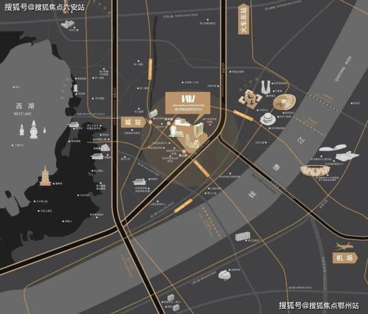 从直线距离2公里范围内的城市资源来看,这里是杭州唯一同时拥有西湖、西湖群山以及钱塘江杭州主江段的城区,这里还有中国比较稀有的城市中心的高铁站——杭州城站,此外,这里的西向即是西湖风景区、湖滨商业区以及南宋皇城小镇等文化历史景区,向东则是钱江新城,此外周边德寿宫、胡雪岩故居、鼓楼等一众文化名胜……如此高规格的资源配置,反映出两个视角上的“杭州作为”: