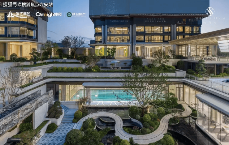 像未科的时舟里,它的门头之所以特别张扬显眼,是因为滨江创造性地把它跟下沉式庭院嵌套在了一起;现在同样的手法,又出现在了云城新盘——咏舟府。