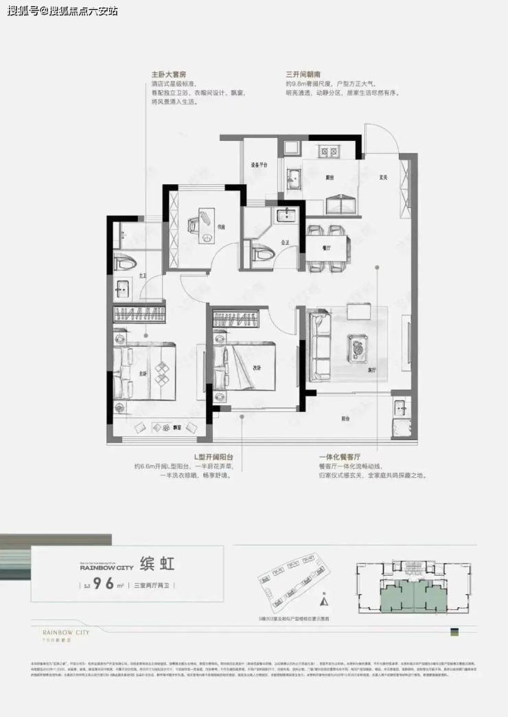 建面约96㎡的3房户型,总价不到200万,首付只要30万起,一体化餐客厅与两间起居卧室带来三开间的南向采光,想象一下,每个家庭成员每天起来,阳光透过大飘窗能第一时间照射进房间;南向L型双联阳台,既能当做日常生活晾晒阳台,也可以在这里种花养草,作为家里的绿植歇息空间。