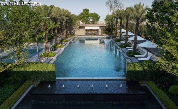同时整个泳池区域与相邻两侧的景观组团设计相结合,在泳池两侧还特意重金移植了具有热带独家氛围的棕榈,让你感受看得见的隐雅品质,光和水融入设计之中,可以尽情享受穿越到海岛的度假时光。