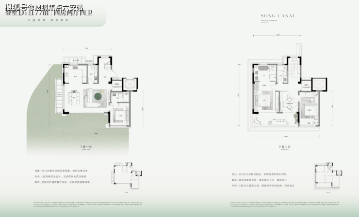 户型:涵盖建面约285 - 379㎡的低密排屋,以及建面约136 - 176㎡的宋风院墅