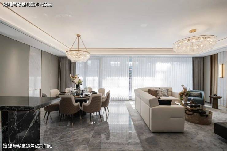 项目针对多代家庭需求,创新采用“动静分层+垂直分区”设计:一层为全龄共享空间,配备中西双厨与家庭厅;二层设置双主卧套房,主卧配置270°观景飘窗;三层半打造独立书房与茶室,形成“社交-休憩-私享”三级动线。