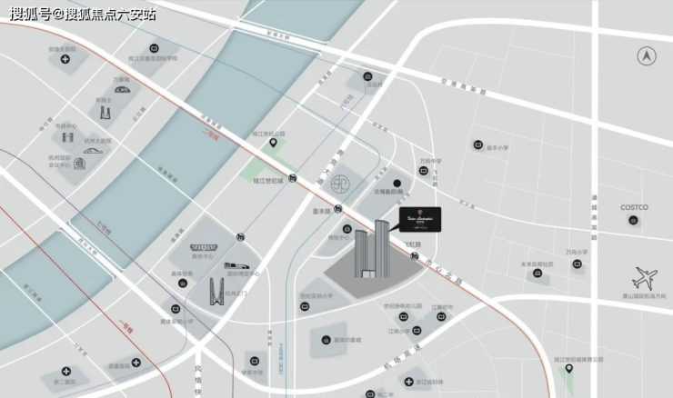 是杭州之门后,奥体落成的海拔第二高双塔(约250米),外号“小杭州之门”。瑰郦中心L-VILLA位于T2塔楼,12层的裙楼就是托尼洛·兰博基尼酒店。