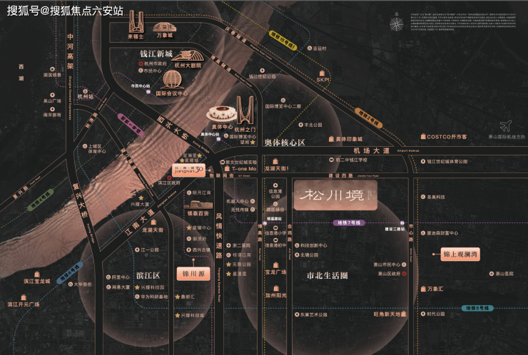 双地铁(建设中):7号线、15号线近在咫尺,2站奥体、3站SKP(建设中)、4站钱江世纪城、7站萧山国际机场,快线纵横瞬息全城。