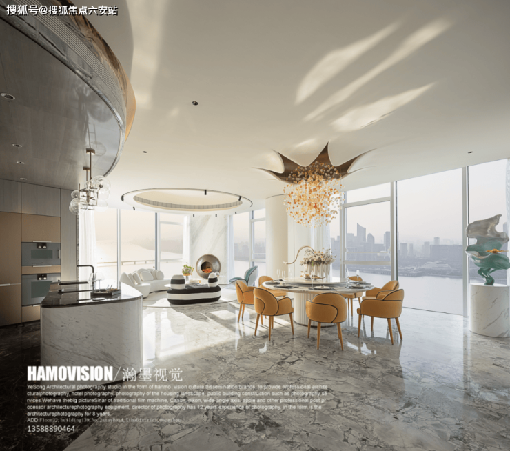 【意趣丰盈的会所】项目会所位于51层,以高定「云端六境」,聚“社交、会晤、私宴”等复合型功能,呈现惬意天际生活空间。