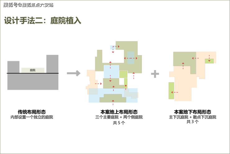 丽香庭借鉴古典入园空间序列,打造多重院落、层层递进的归家礼序。地块整体抬高约3.7米,最大高差超过7.5米的下沉庭院,以微妙的视觉层次划分功能空间,通过散点布局、小空间组织,消解空间中心;自然山水垂直铺展,形成多维“立体庭院”。游廊曲折、台地错落,行走其间,循着自由灵动的立体游园路径,忘园入画,化境归心。