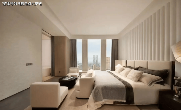 总统式套房:主卧配备独立家政间、衣帽间及干湿分离卫浴,部分户型设2㎡安全屋及私人观景露台。