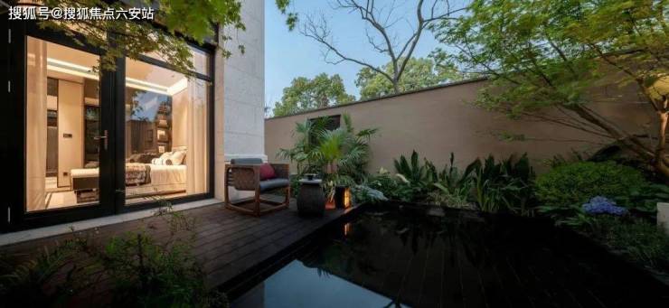 一层的平面是「曲尺型」的布局,客餐厅之间以游廊相连,客厅与餐厅以斜45°角的对望关系存在, 中间以内庭水景相隔,巧妙地解决了室内与室外之间的渗透关系。它能带给你心灵上的自由、行动上的自由,这才是真正住别墅的一种意义。