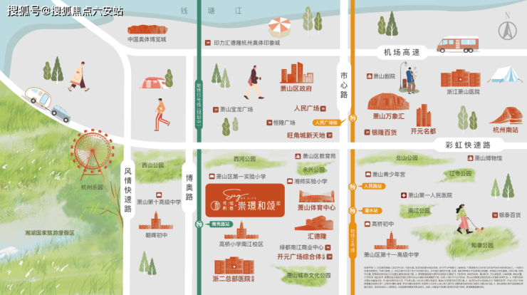 生态与休闲配套方面,项目直线距离湘湖度假风景区约1.2公里,湘湖作为杭州知名的生态景区,湖面广阔、风景优美,闲暇时可带着家人前往散步、骑行、野餐,享受繁华中的自然静谧时光;3公里范围内还有南江、知章、西河、江寺、永兴、西山等自然资源,以及南江公园、杭州乐园等休闲场所,日常休闲及户外游玩选择丰富。此外,项目直距约700米可达萧山体育中心,3公里范围内还有在建的萧山城市文化广场、萧山青少年宫、萧山市心广场等配套,无论是运动健身、文化休闲还是亲子娱乐,都能找到合适的场所,丰富业主的精神文化生活。
