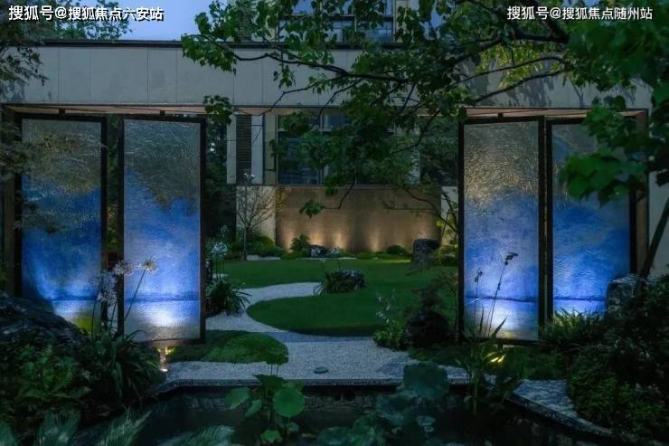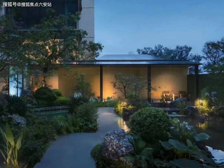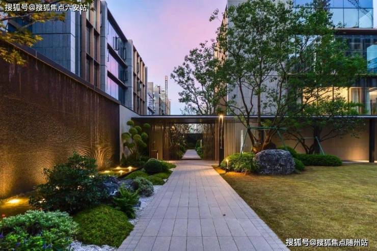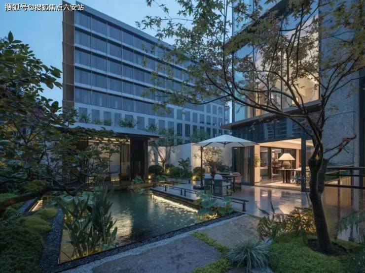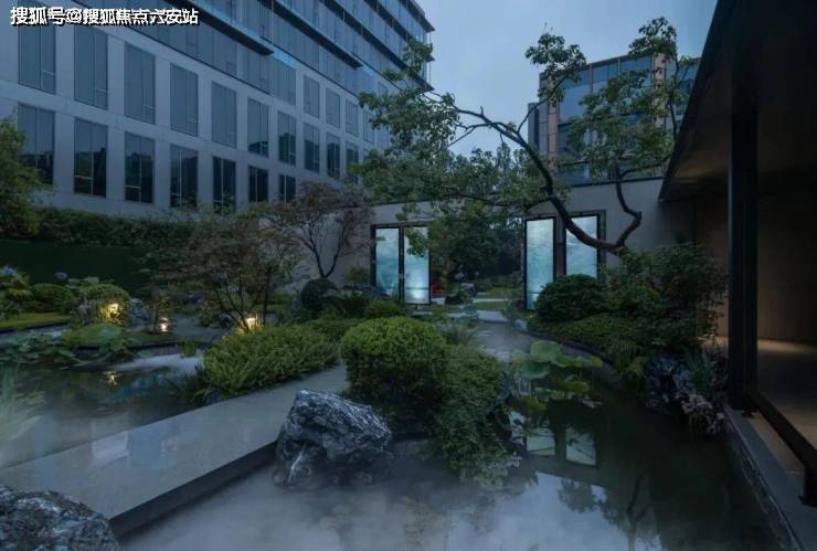 外立面采用奢雅石材+隐框玻璃幕墙+金属格栅,局部融入飞檐、窗框等传统元素,形成“现代东方”美学语言。四进庭院归家礼序(绿野花园→云栖花园→静语花园→韶光花园),融合枯山水与光影艺术,打造“建筑与自然共生”的沉浸式体验。