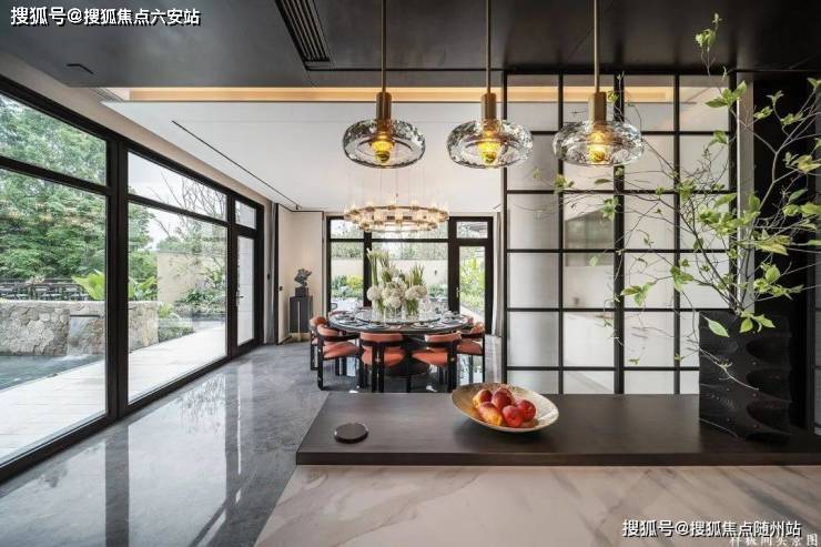 庭院与客厅形成90°围合,随意落座沙发或单椅,都能望见庭院景致,清幽宁静的室内花园,疏解压力,给自己一个畅享生活的自由空间。