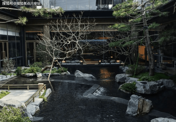 在下沉庭院旁,令人眼前一亮的是“独具赏梅观景体验”的阅读厅。大面积的观景玻璃正对下沉庭院的水景,业主可以在这里一边品茶,一边欣赏庭院内的梅花美景,感受时间的流动,将自然与人文完美结合,想象中的“极致人文雅致”,在这里具象化。