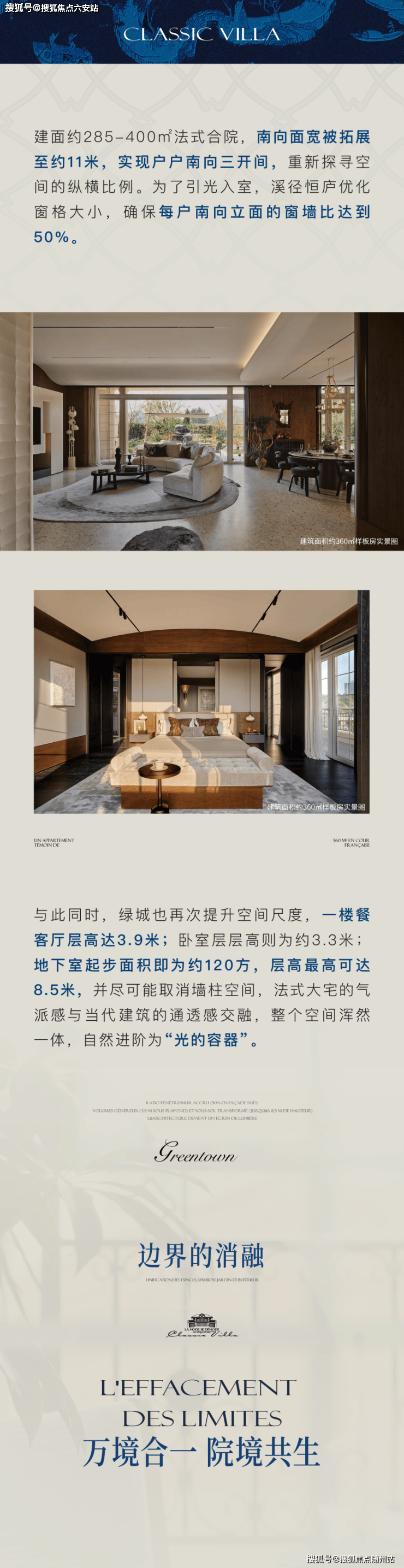 产品设计突破 法式联排回归:融入卢浮宫玻璃金字塔元素,通过金属雕花、石材立面与弧形玻璃幕墙碰撞,主推285-396㎡户型,配备下沉式庭院、双入户系统及星空露台,赠送率超100%。