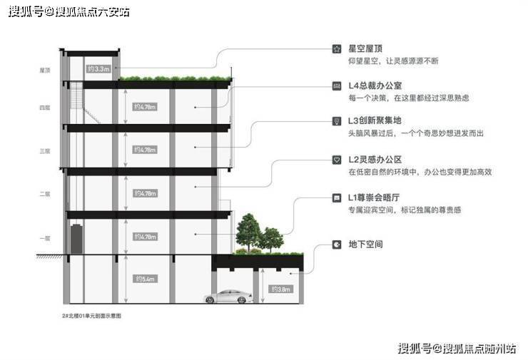 项目独创“4+1墅式生态办公体”,每栋建筑享有独立产权及楼栋专属logo冠名权,打造企业烫金名片。地上四层地下一层设计,配以200-500㎡私家庭院、220㎡星空露台,实现“一企一栋”的专属商务领地。
