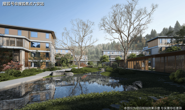 建筑设计上,前瞻世界审美与建筑表达,镌筑中式坡屋顶和大面积玻璃封面,让建筑消隐于湖山环绕的自然之中。