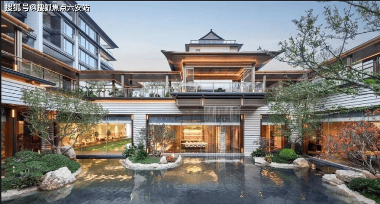 2. 新中式美学标杆:承袭建发经典新中式风格,以中国古代庑殿顶为设计灵感,融合良渚文化元素与宋画飞檐,立面采用四面铝板、琮黄石材,基座金铜三色交织,庄重沉稳;园林由奥雅股份操刀,打造“一轴两园四坊八巷十景”江南胜境,移植百年老桩紫薇、50年树龄进口羽毛枫等珍稀植物,搭配奢石点缀,宛若江南诗画。