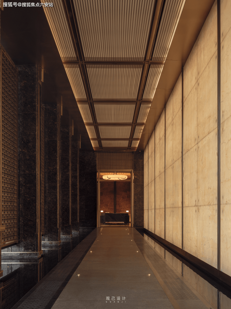格栅的光影落于水面,又为这景致添了几分层次,让整个前场空间满是蓬勃生机,仿佛自然的灵韵与匠人的巧思在此处完成了一场跨越时光的对话。