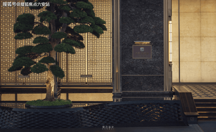 小区入口大门以宋式对称美学为基底,打造约63米宽、9.1米高的恢宏门庭,两侧匠心打造龙鳞水景,并精选名贵罗汉松,彰显归家礼序的尊贵气度。归家动线设计融金属格栅与天然奢石,淬炼奢华质感,以酒店级匠造标准,诠释当代世家气派。