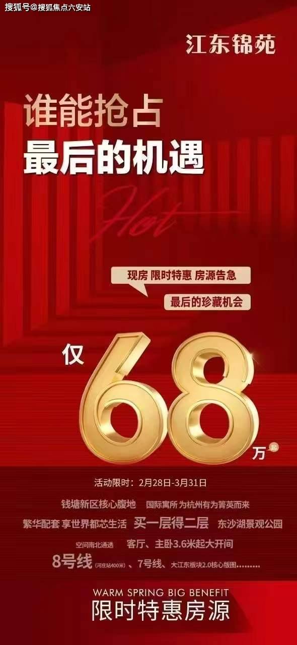 江东锦苑,杭州钱塘新区核心腹地的稀缺公寓项目,以地铁8号线河庄站400米、总价68万起、LOFT精装现房三大核心优势,打造建面约43-80㎡灵活空间。户户带阳台,部分户型通燃气,即买即住,为杭州有为菁英提供买一层得二层、南北通透客厅、主卧3.6米起大开间的理想居所。
