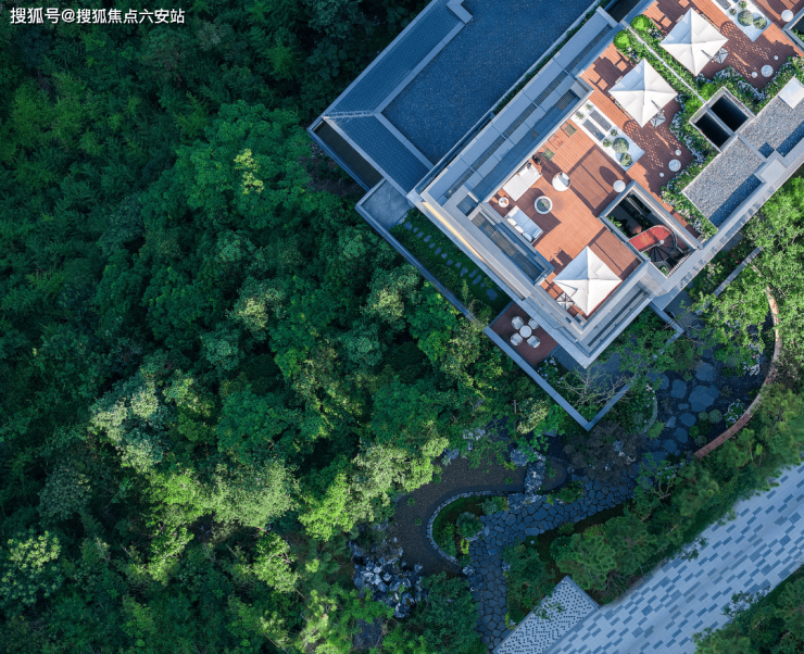 项目容积率仅0.28,百余栋建筑散布于千亩山野,平均每栋占地约5亩,保障居住私密性与视野开阔度。点状供地模式保留原生植被与地形,减少生态干扰。