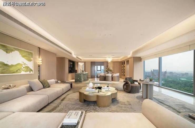 这也是中轴线上的普通住宅难以企及的高度和视野,只有像瑞玺这样,300方以上的大户型,拥有20多米的通透开窗面,又舍得做那么大的落地玻璃,才能实现「跃入眼帘」的效果。