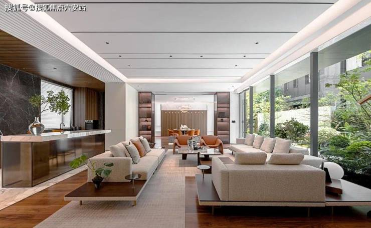 步入院内,更是仿佛踏入了一幅流动的水墨画:曲径通幽处,假山流水、亭台楼阁错落有致,每一处细节都透露着设计师的匠心独运。室内空间则注重采光与通风,大面宽的客厅、全景落地窗的设计,让居住者在享受现代舒适生活的同时,也能将湿地的美景尽收眼底。