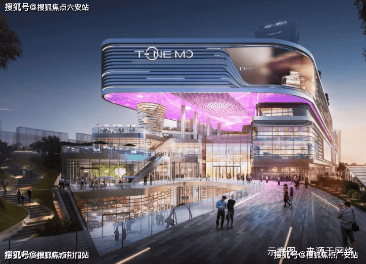立面造型从钱塘江的自然曲线中汲取灵感,以香槟金与深灰双色铝板为主材,搭配铂金钻、黑金沙等甄选石材与弧形玻璃,勾勒出富有流动感的超流体轮廓。