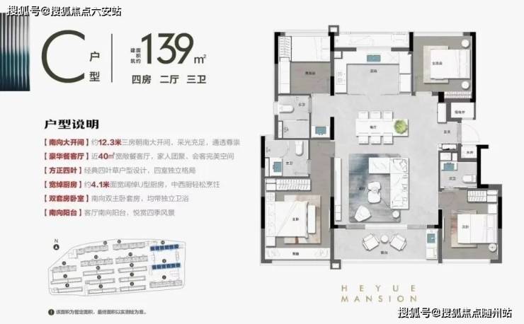 ▲前程和悦府约139㎡户型图