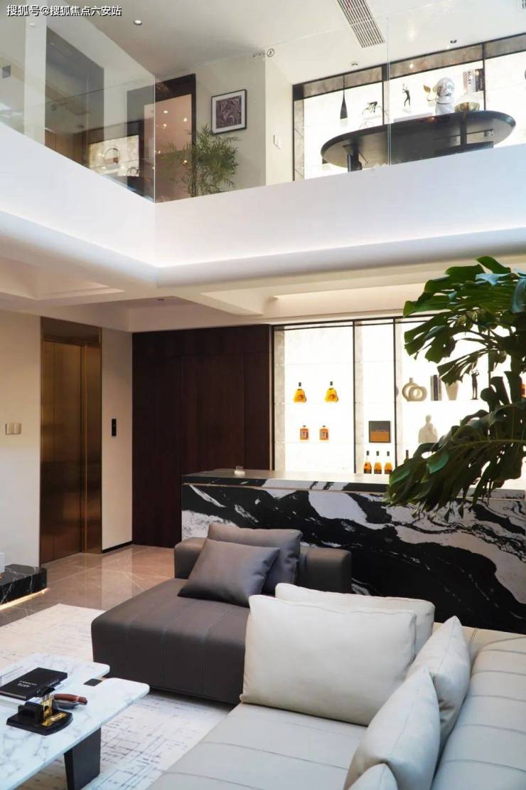 “雅奢”是踏入金翊·金云院美学样板房的第一印象。新亚洲风格装修,温柔系家居配色,金古铜元素与大面积石材的运用,将开放式的动区与私密生活的静区优雅结合。让众多参观者最是眼前一亮的,便是金翊·金云院的双层挑空地下。电梯自四楼而下,在-1层打开的一瞬间,采光井的光线打在墙面上,发出耀眼的丁达尔效应。