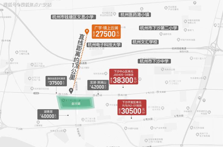 项目择址杭州东部“城市之眼”下沙核芯板块--金沙湖之上,直线距离金沙湖约1.8公里。